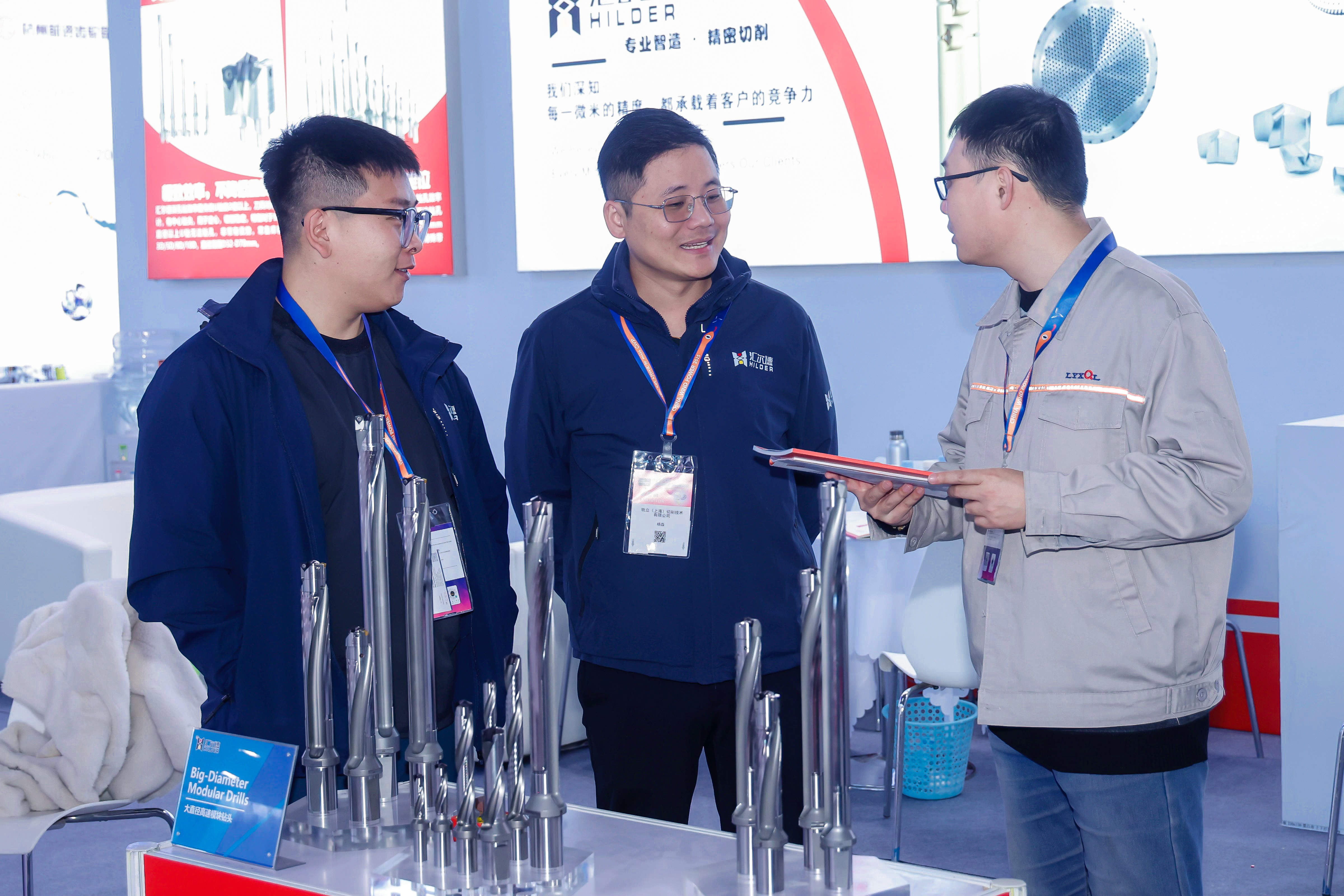 工程师们围绕 “风电主轴深孔加工振动控制”“42CrMo 法兰毛刺优化” 等问题,与客户展开最后一轮深度推演; 不少错过前期交流的伙伴专程赶来,在刀具展示台前,通过实物对比、参数解析,直观感受铣立刀具在 “寿命、精度、效率” 上的优势; 我们的团队也在展位前留下了合影 —— 这张照片里,有三天的专业坚守,更有对未来合作的满满期待。